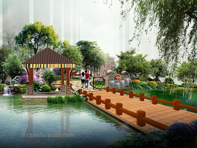 (2)藝術(shù)外貌——園林景觀的設(shè)計與建筑風(fēng)格協(xié)調(diào)統(tǒng)一,打造特色水景區(qū),體現(xiàn)濃郁的東南亞風(fēng)情。
