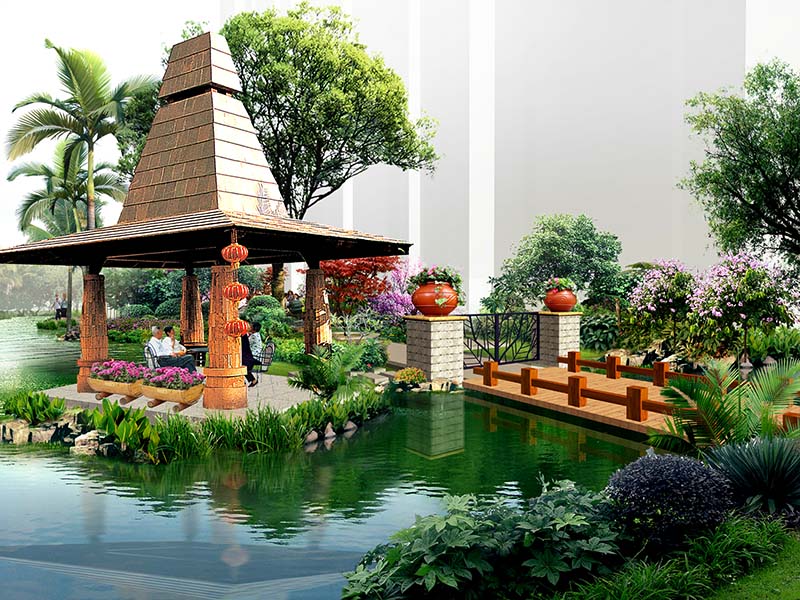 整個園區(qū)汲取東南亞風(fēng)情園林精華,以藝術(shù)的手法建造園林,純凈的空氣、養(yǎng)眼的蒼翠,再現(xiàn)東南亞休閑、悠然情調(diào)。將景觀與藝術(shù)進(jìn)行最大限度的融合,人